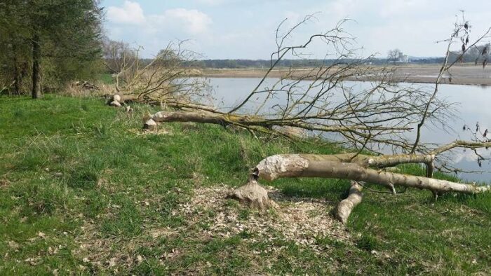 Heute habe ich ein bisschen die Gegend entdeckt. Und dabei eine Sensation gefunden: 5 (dicke) angeknabberte Bäume von einem Biber, der direkt im Wald vor unserem Haus unterwegs ist. Der Wald vor unserem Haus ist wie in einem Märchen. Scheinbar wollte dort irgendjemand mal einen Campingplatz oder Kleingarten errichten. Überall gucken Rohre oder Brunnenpumpen aus…