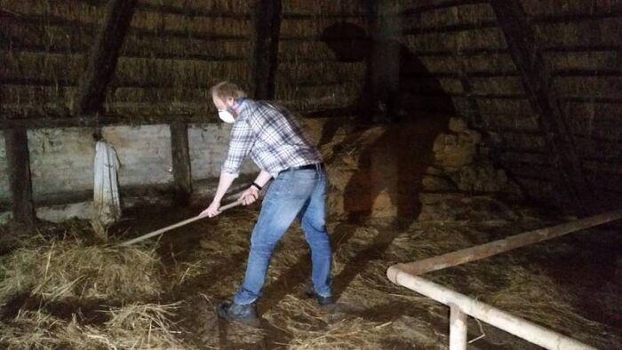 Heute haben wir den ersten Vatertag am Haus erlebt. Allerlei vorbeiziehende “Väter Truppen” mit Bier und Musik sind am Haus vorbei gelaufen und mussten natürlich fotografiert werden. Außerdem haben wir mal wieder die Diele “vollgemüllt”. Der ganze Boden war voller Heu und Reet. Da das Dach bald gedeckt wird, muss jetzt endlich mal alles frei/leer sein.…