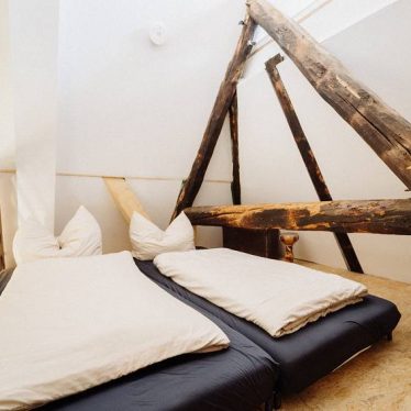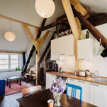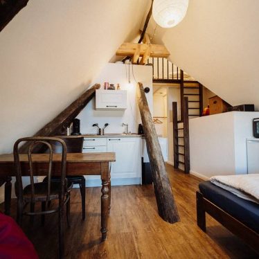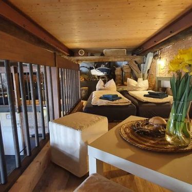 Im Dachboden befinden sich vier Wohnungen (von 22m² bis 40m² Größe), die Altes mit neuem Verbinden. Alte Gegenstände und Dachbalken- und Sparren treffen auf moderne Einrichtung und Bäder mit Sauna.