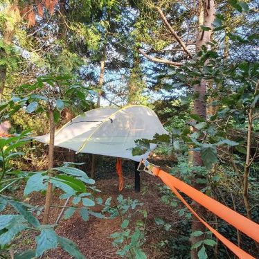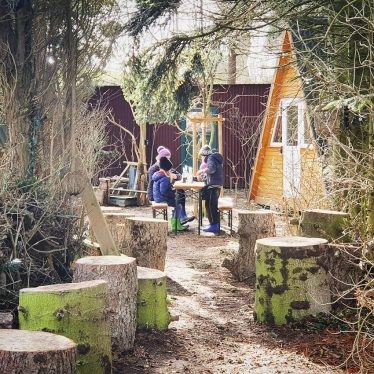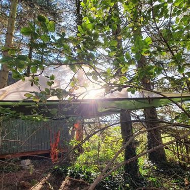 Die vier Waldhütten und ein uriger Bauwagen sind von alten Tannen umrahmt und haben einen kleinen Hüttendorfplatz, auf dem kleine Märkte stattfinden. Im Sommer hängen auch zwei Baumzelte in den Bäumen.