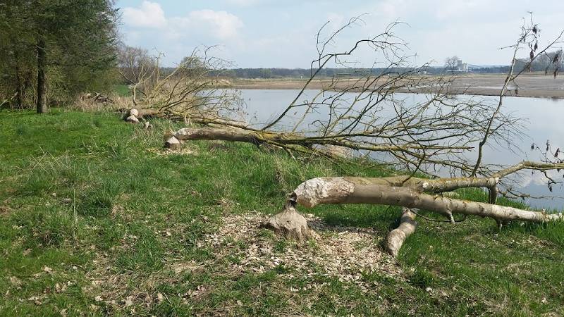 Heute habe ich ein bisschen die Gegend entdeckt. Und dabei eine Sensation gefunden: 5 (dicke) angeknabberte Bäume von einem Biber, der direkt im Wald vor unserem Haus unterwegs ist.