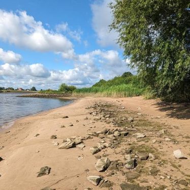 Und, wie überall in der Elbe, muss man beim Planschen sehr gut aufpassen. Die Elbe ist und bleibt ein großer Fluss mit Strömungen und Untiefen. Um zum Strand zu kommen, muss man bei Ebbe vor dem Zaun elbabwärts entlanggehen (hinter dem Gestrüpp geht’s los).