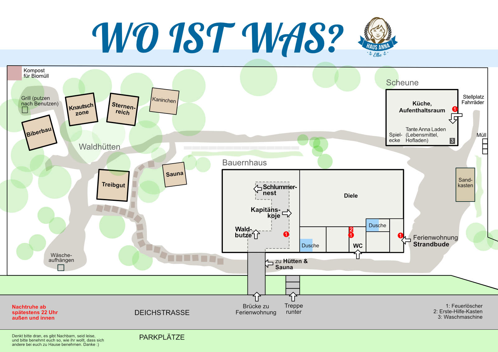 Hier beantworten wir schon ganz viele oft gestellte Fragen. Ganz unten ist ein Hofplan, auf dem man sieht, was wo zu finden ist.