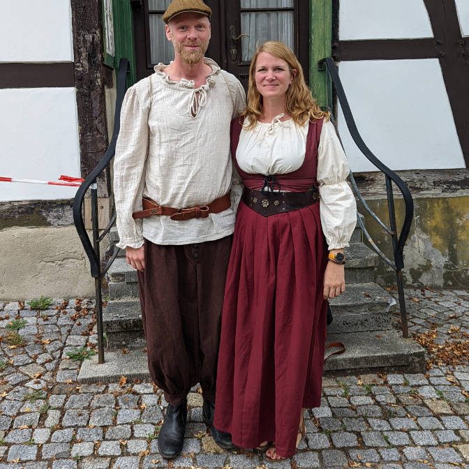 Da läuft mittelalterliche Musik. Speis und Trank aus alter Zeit. Tobias von der Schule für mittelalterlichen Schwertschaukampf zeigt was. Bitte kommt in mittelalterlicher Kluft – wir machen das auf jeden Fall 🙂